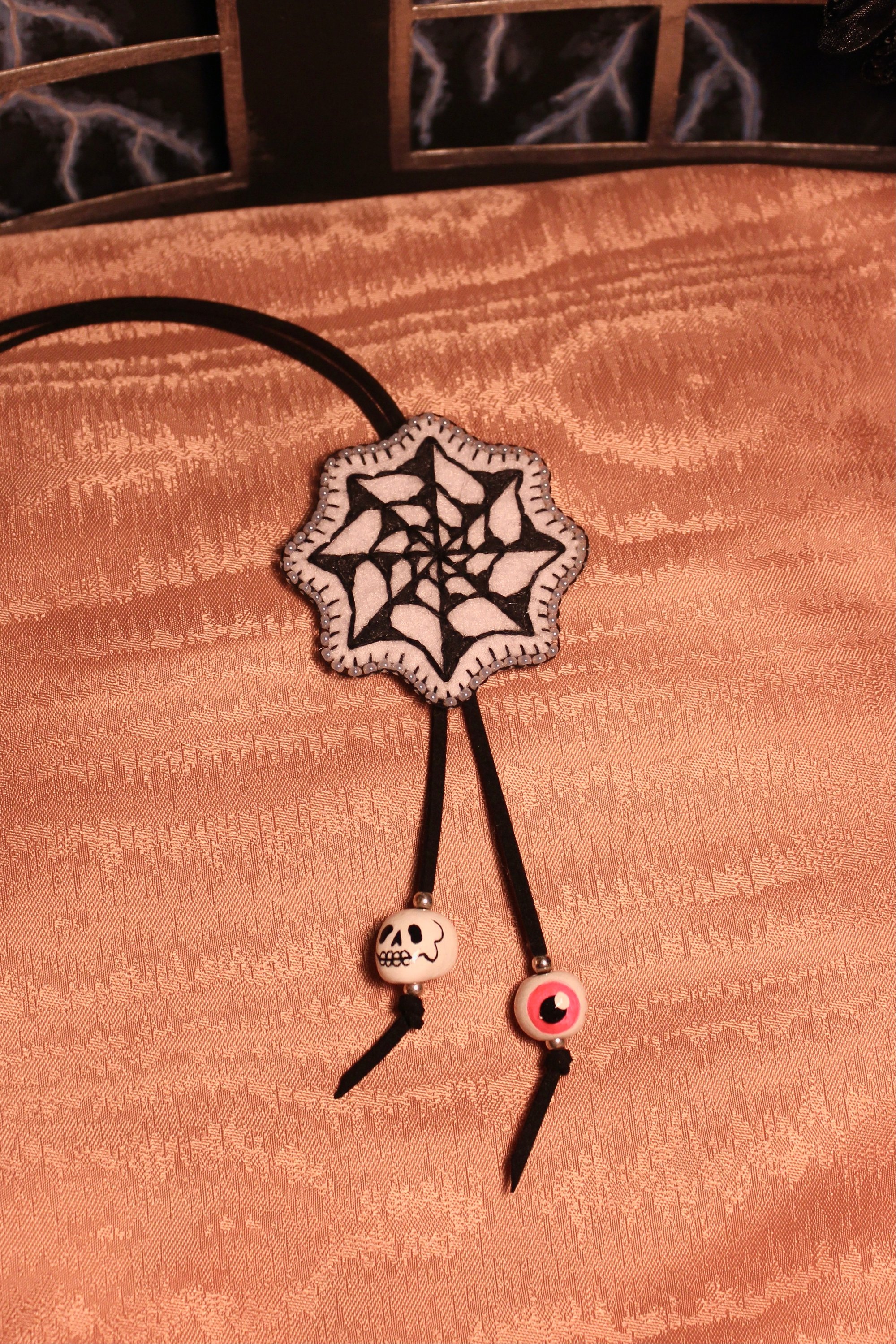 Spider Web Bolo Tie (Pearl beads)